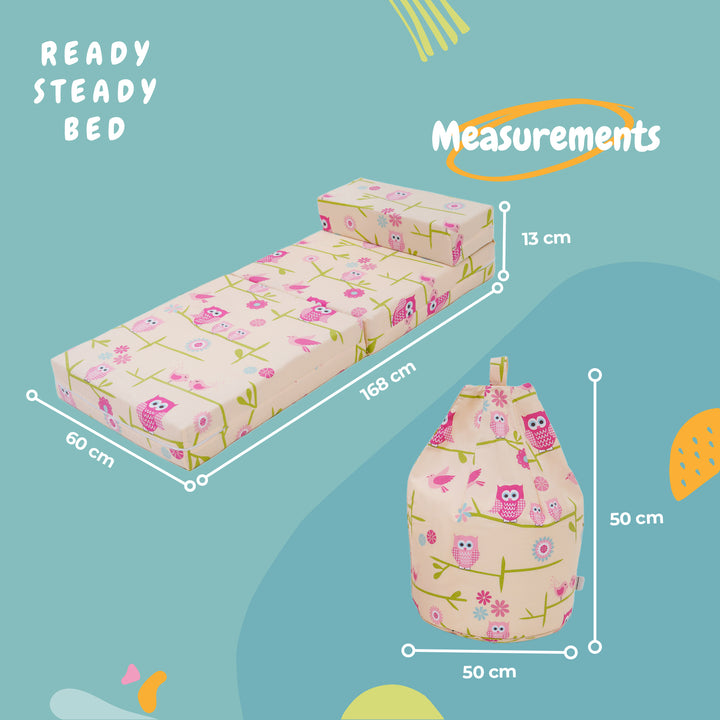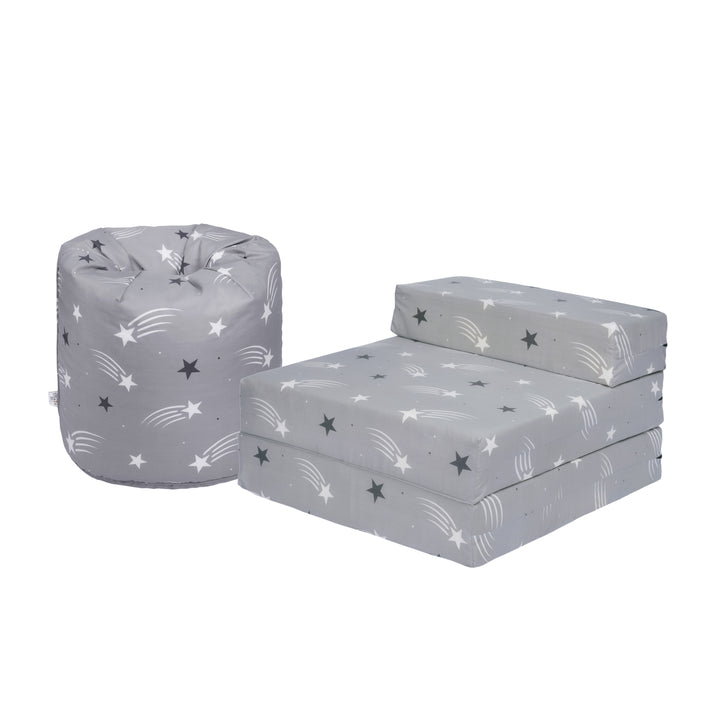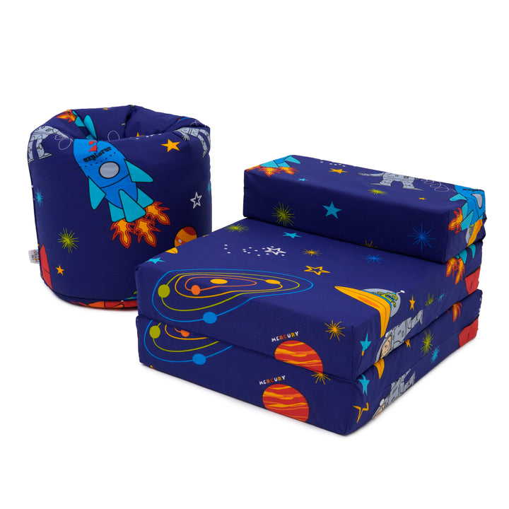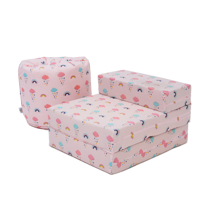 Kids Bean Bag and Folding Z Bed Printed Toddler Beanbag Chair and Guest Mattress